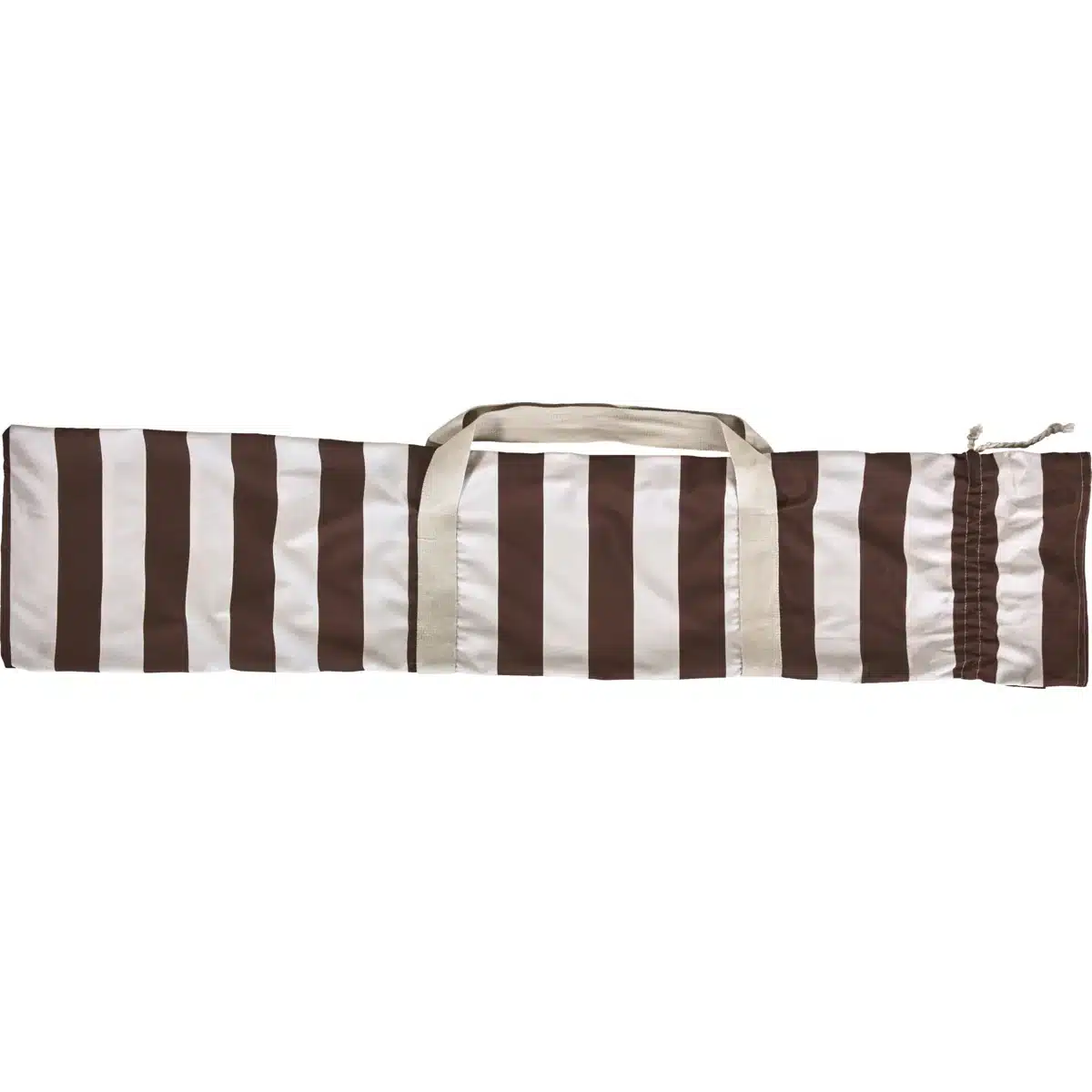 Transformeer uw buitenervaring met deze elegante parasol. Met een ontwerp van brede bruine en gebroken witte strepen met decoratieve gebroken witte franjes voegt hij een vleugje klassieke stijl toe aan uw tuin, balkon of strand. Gemaakt van een duurzaam polyester doek en een stevige beukenhouten stok, combineert deze parasol perfect functionaliteit met een tijdloos design. De parasol is eenvoudig te monteren en wordt geleverd met een praktische stoffen tas voor gemakkelijke opslag en transport, waardoor het een ideale keuze is voor wie houdt van veelzijdigheid en stijl in zijn buitenruimte.