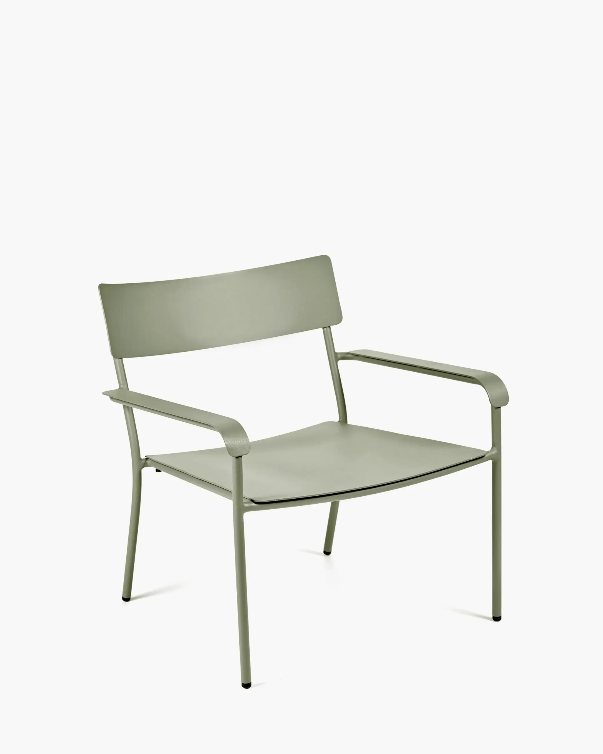 Vincent Van Duysen staat bekend om zijn vermogen om puur minimalisme op zijn eigen unieke manier naadloos om te zetten in comfort. De interieurarchitect heeft extra steunen op de armleuningen gemonteerd en de zitting en rugleuning zijn licht gebogen om meer steun te bieden. De weerbestendige loungestoelen zijn volledig gemaakt van zwart of grijsgroen gepoedercoat aluminium en kunnen zowel binnen als buiten worden gebruikt voor een heerlijk moment van ontspanning.