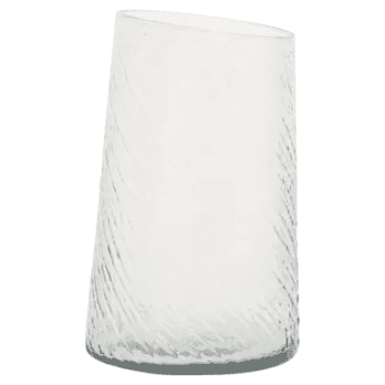 Vaas Flyt is een midlange, taps toelopende vaas die met de hand gemaakt is van gerecycled glas en in bezit is van een geribbelde textuur. In dit ontwerp zit beweging en spontaniteit. Vaas Flyt gaat perfect samen met de Havet vaas uit dezelfde collectie – samen vormen ze een prachtig paar, zowel met als zonder bloemen. Onderhoudsinstructies: alleen met de hand wassen