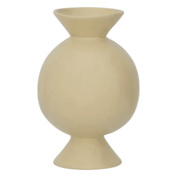 Deze keramieken bloemenvaas in zachtgeel valt op door de organische, eigenzinnige vorm. Fris en speels met veldbloemen of droogbloemen of gewoon als object.