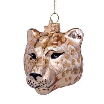 Vondels Ornament glass shiny gold panther head H7.5cm